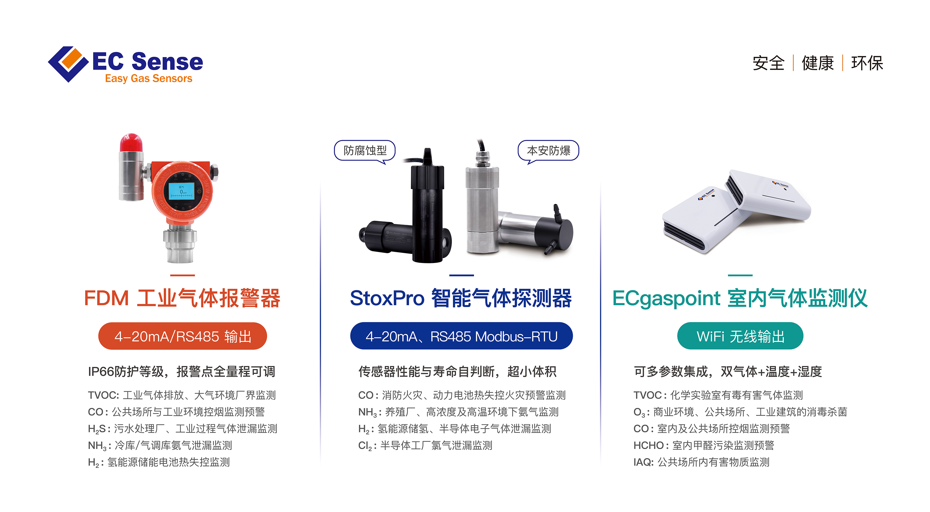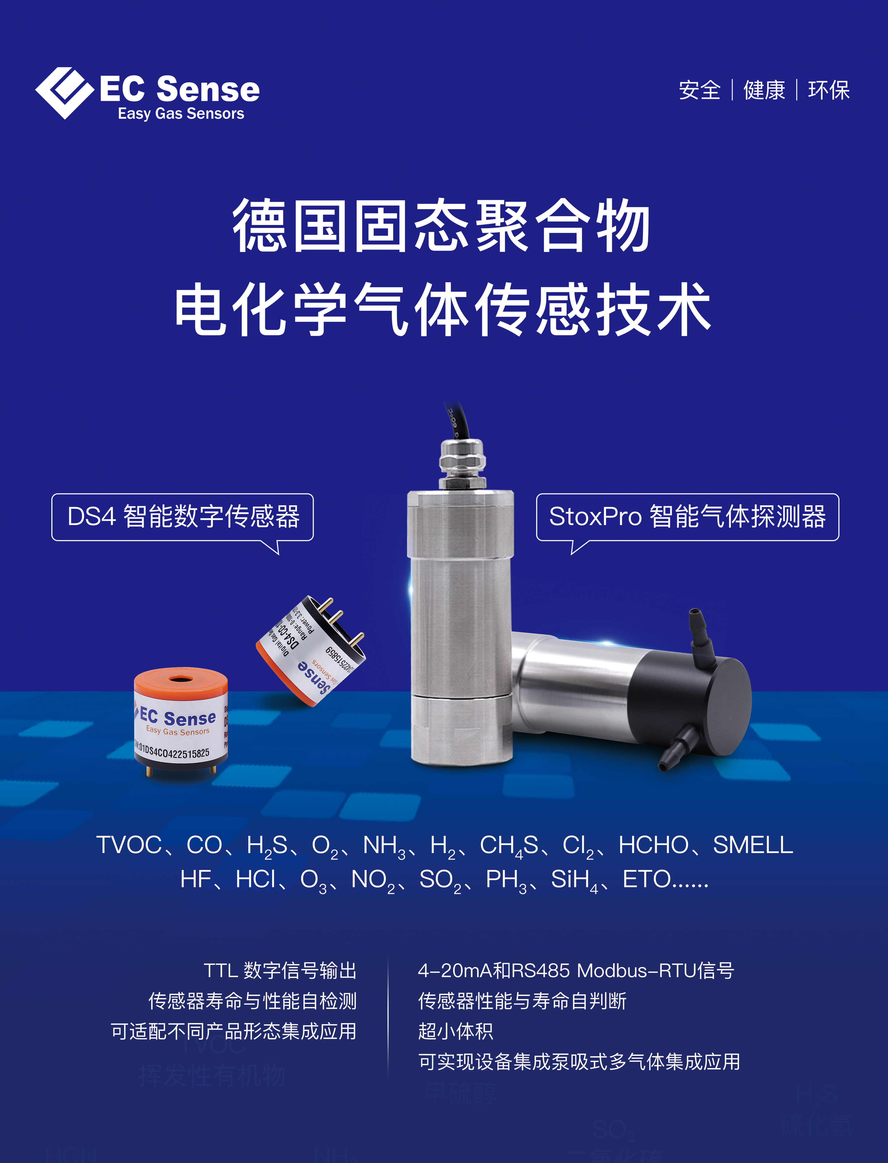 在这场展会上,我们将推出仪器仪表、气体传感器及气体传感器模组,其中包括了新品ECD控制器、StoxPro智能气体探测器、DS4智能数字传感器、DGM10智能双气体模组等,欢迎各位届时莅临我们EC Sense展台。